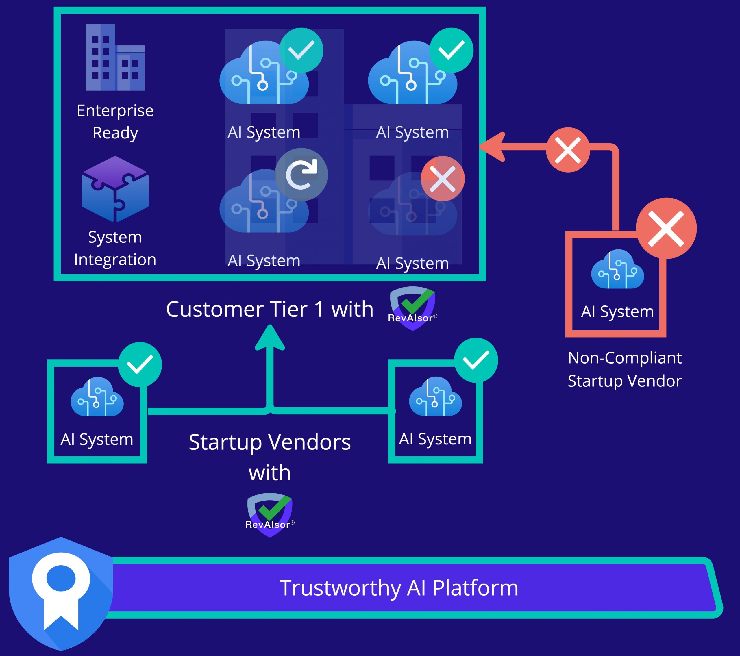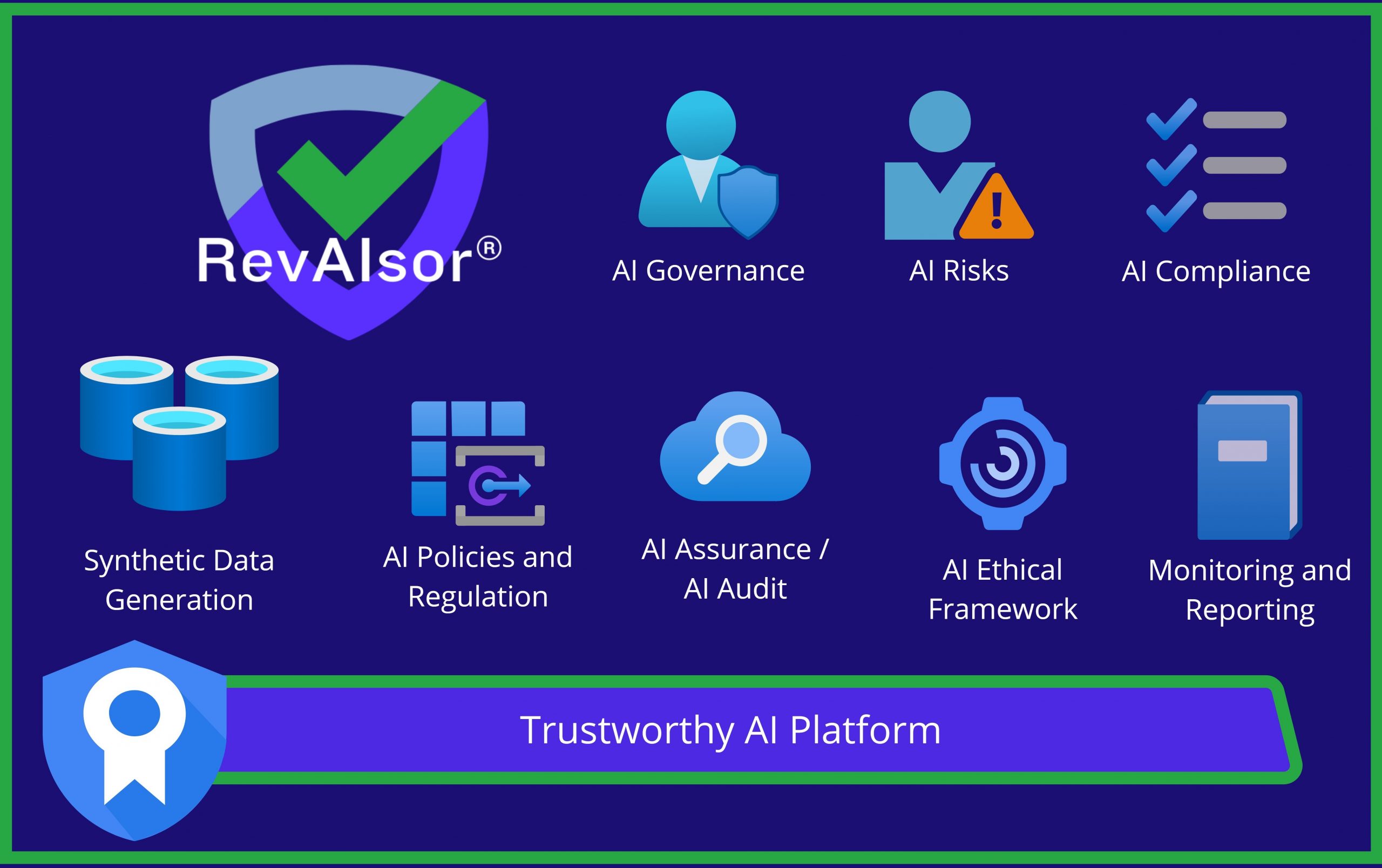 - RevAIsor® offers a robust framework for AI governance, ensuring that AI solutions meet all regulatory requirements. This fosters trust from tier 1 banks by assuring compliance and reducing risk.